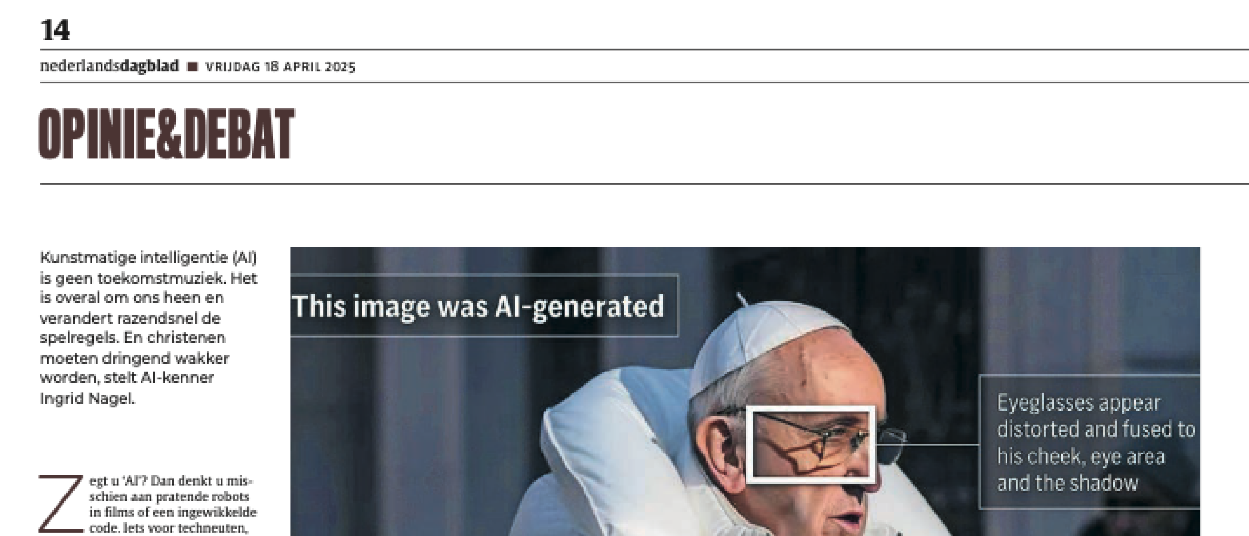 Dit artikel verscheen vrijdag 18 april 2025 gedrukt in het Nederlands Dagblad. En is ook online vindbaar op de pagina van het ND: https://www.nd.nl/opinie/opinie/1265318/stop-met-wegkijken-kunstmatige-intelligentie-is-overal-en-dat#closemodal